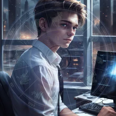 Deutung der Planeten von Sonne bis Pluto in Zeichen und Häusern, des AC in den Zeichen sowie der Hauptaspekte (plus Sextil), die diese Planeten zueinander und zum AC bilden.